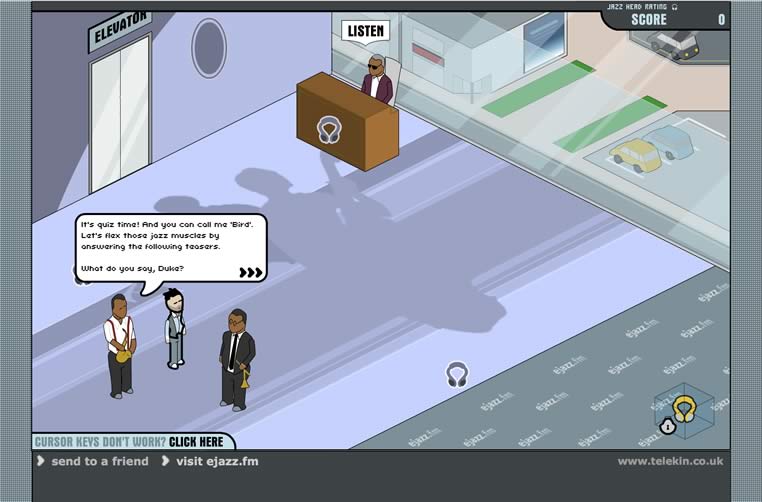 There’s a lot going on, though. Choose a character and earn points as you wander through a building, listening to music and doing quizzes and that. It’s all jazz related, though, so pretty niche.