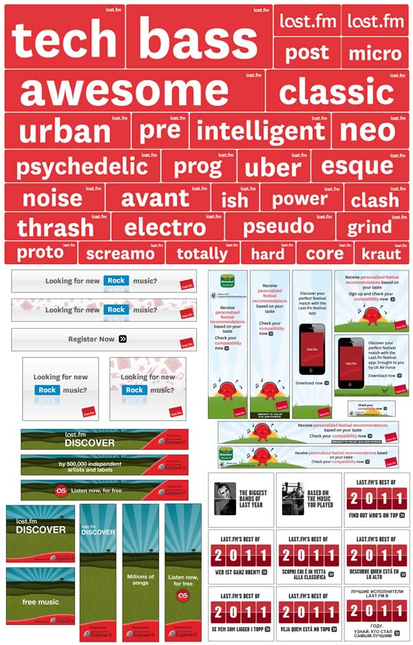 I’m getting a bit sick of saying ‘oh, there were a lot of these’, but oh, there were a lot of these. It just doesn’t make sense to include everything, as we’ll be here all day. I’m trying to split them out into different projects and I suppose this would come under ‘in-house’ or something like that. So stuff for Last.fm themselves rather than any third parties or what have you.