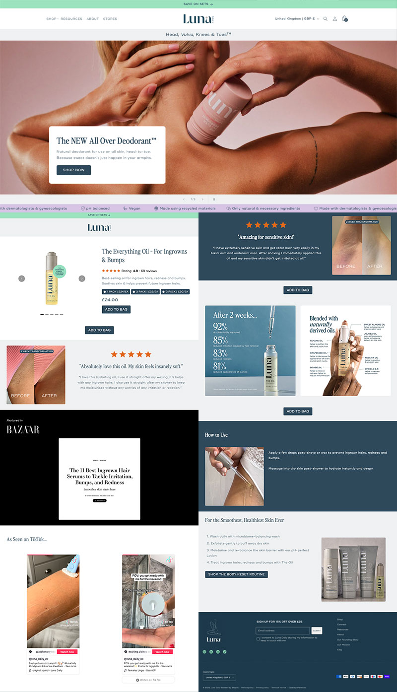 A bit of a tough one to display, this, as a lot of it involves Shopify backend tweaks. And obviously you don’t really want to see that represented visually, as it’s just menus and lists and what not. Dotted around all the admin bits and pieces are a couple of design-y things; carousel items, landing pages and so on but yeah… a lot of it is reorganising templates and re-encoding social media videos and the like. But hey – it’s a dirty job but someone’s gotta do it.