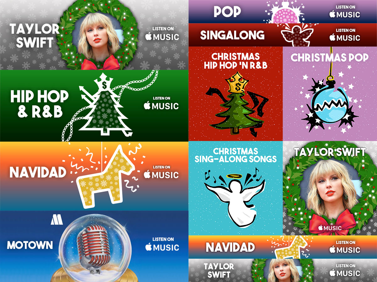 With that in mind, you’ll just have to make do with these stocking fillers. Ugh. Felt like Alan Sugar on the Apprentice when I said that. These are very simple ads and graphics for the Apple Music platform. Taylor Swift in a wreath. I think she’s still alive.